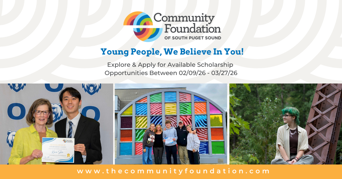 The Community Foundation team works closely with schools and community partners across Lewis, Mason, and Thurston counties to share information about available scholarship opportunities with local students. If you would like more information on how to support students during scholarship season—whether by scheduling a visit from our team, requesting scholarship flyers, or exploring other ways to assist—please contact Tami Mason Lathrop, Program Officer, at tami@thecommunityfoundation.com.